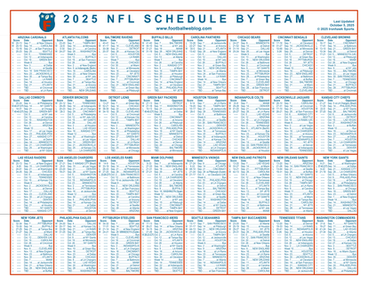 NEW! 2025 One Page Printable NFL Schedule by Team