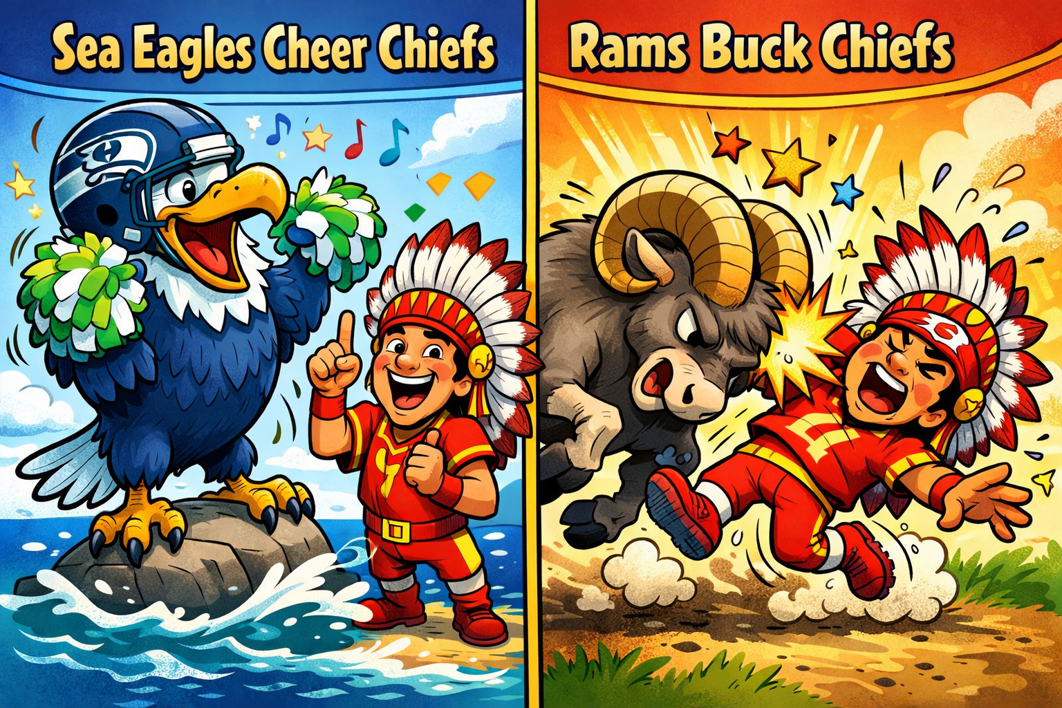 “Sea Eagles Cheer Chiefs, Rams Buck Chiefs.”